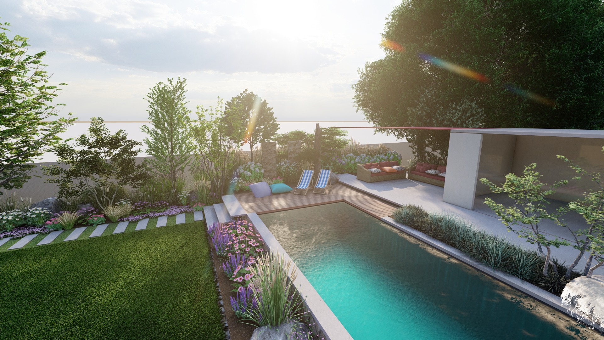 Bei der Entwicklung maßgeschneiderter Lösungen verbinden wir Kreativität mit sachlich fundierter Planung und Sorgfalt bei der Realisation. Dabei orientieren wir uns sowohl an Ihren individuellen Wünschen, Bedürfnissen und Interessen als auch an der bereits vorhandenen Vegetation, der Topographie, der Hausarchitektur und dem Landschaftscharakter. Das Ergebnis: Ein rundum stimmiges Konzept.